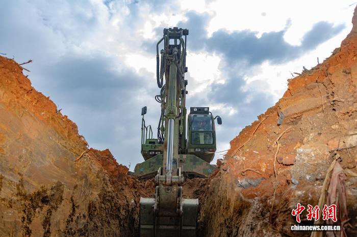 图为武警广西总队灵活收队工卒分队民卒正正在停止开掘机运用功课。何其骏 摄