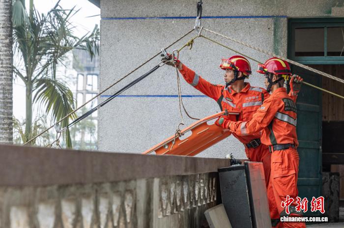 图为武警广西总队灵活收队工卒分队民卒正正在停止绳子救济。吕奥 摄