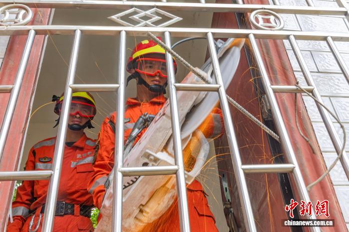 图为武警广西总队灵活收队工卒分队民卒乐成将“授困大伙”救出。何家龙 摄