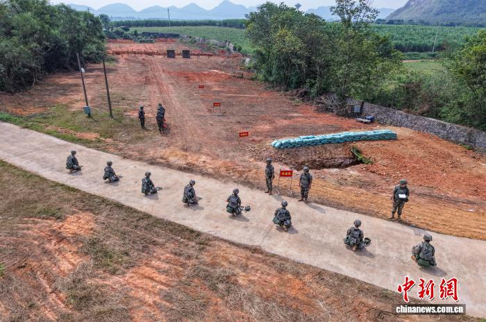 图为武警广西总队灵活收队工卒分队民卒正正在停止开采机运用功课。何其骏 摄