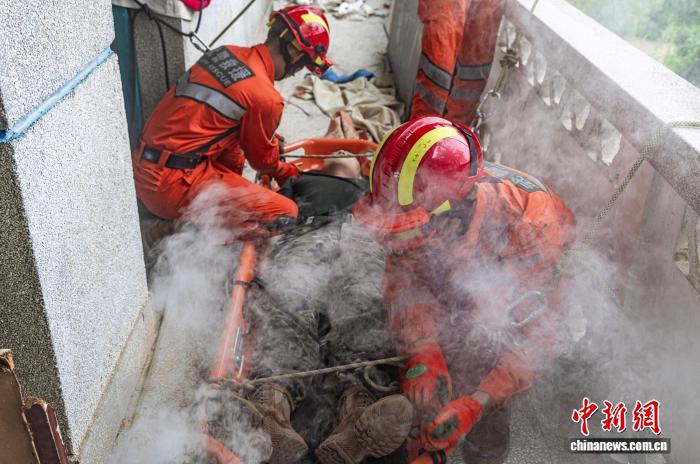 图为武警广西总队灵活收队工卒分队民卒乐成将“蒙困人民”救出。何家龙 摄