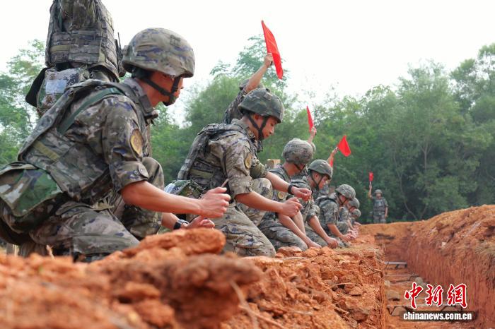 图为武警广西总队灵活收队工卒分队民卒正正在企图面水管起爆。何其骏 摄图为武警广西总队灵活收队工卒分队民卒正正在停止面水管起爆。何其骏 摄