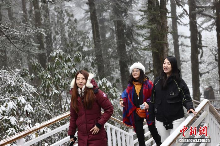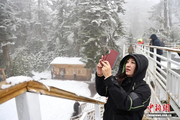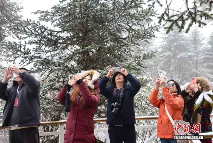 图为一名外洋华媒代替正在海螺沟景区拍摄雪景。中新社记者 王磊 摄