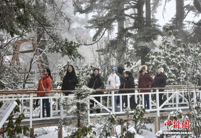 图为外洋华媒代替正在海螺沟景区观光。中新社记者 王磊 摄